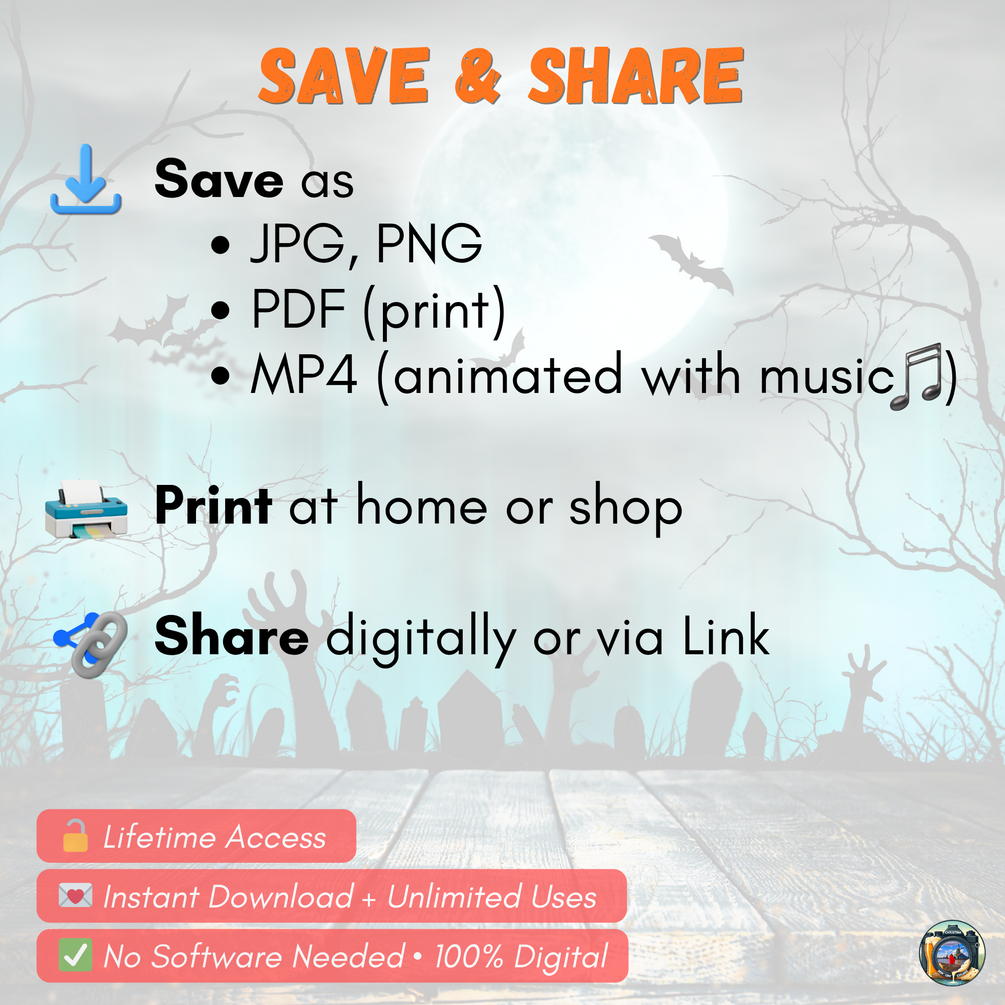 - Save as JPG, PNG, PDF (printable), or MP4 (animated with music 🎵)